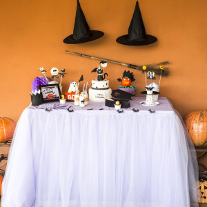 Per arricchire ancora di più la vostra festa realizziamo uno scenario spettrale!!! Arancio, viola e nero, saranno i colori che vedrete sulla vostra Sweet Table, ricca di dolcetti, bibite, piatti, tovaglioli e bicchieri tutto a tema Halloween.